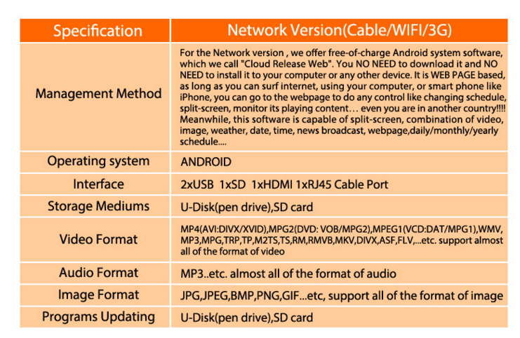 | Android Configuration | CPU | Allwinner A31 64 high speed quad core processor clocked up to 1.2GHz | ||