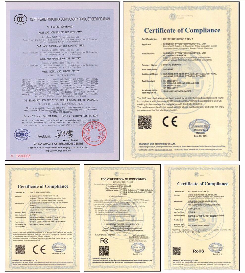 SYTON Co,. established in 2005 in Shenzhen China, is always highly specialized in the field of LCD products. We have been developing and manufacturing LCD products since 2005 and during these years we have developed our own products, such as LCD ad player, touch screen kiosk, large-screen splicing, teaching machine, all-in-one PC, car ads, weichat advertising player and so on.
