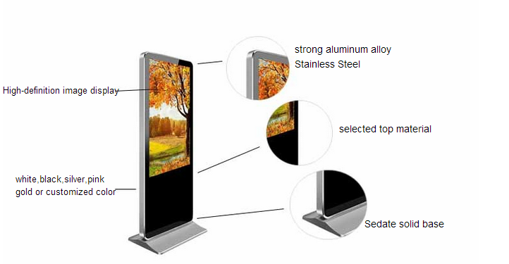 Insegne pubblicitarie digitali stand alone da 65 pollici di buona qualità, poster pubblicitario