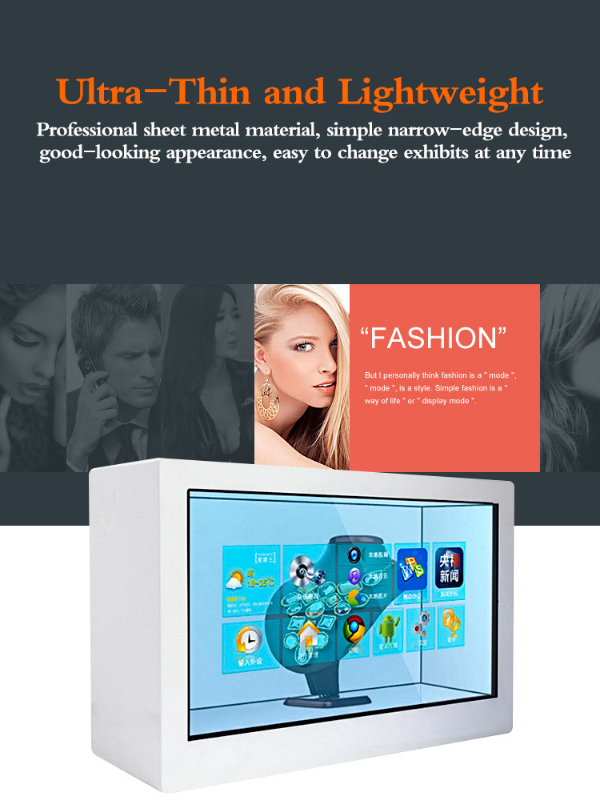 1. Wide Range of Applications: The transparent display cabinet is suitable for various industries and settings, including retail stores, electronics stores, advertising promotions, museums, trade shows, and exhibitions, providing an ideal platform for showcasing and promoting products across different sectors.