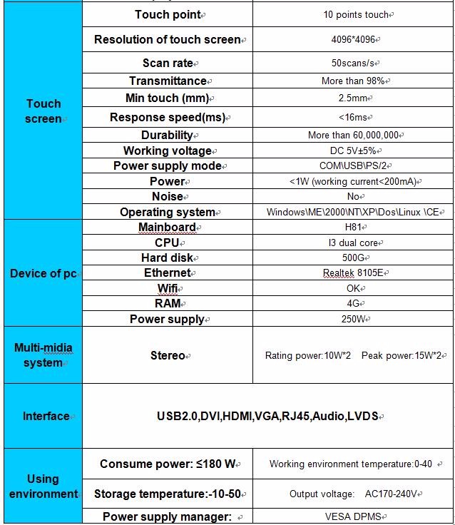 The Parameter for more size of our touch advertiser player , please kindly check it