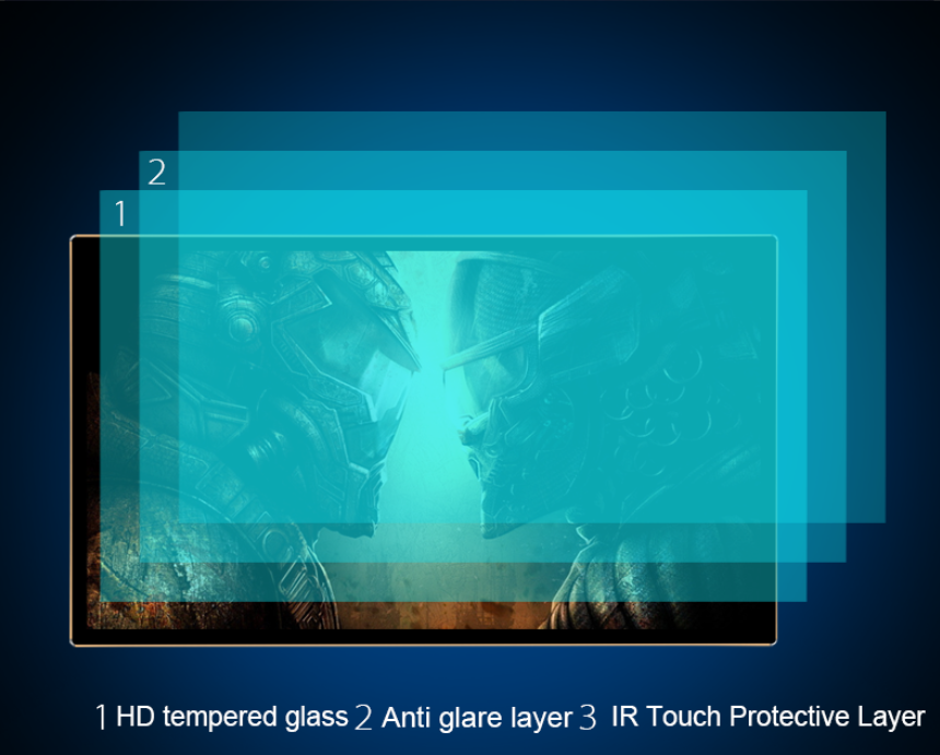 Adopts high transparent tempered glass (2-6 mm ) as protection layer to prevent lcd/led panel being broken or distorted.