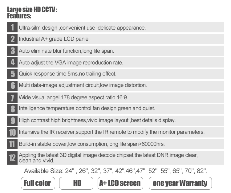 This type Android advertising player can connect wifi and download Apps ,pictures,films or videos on the internet. If without wifi, the floor standing digital signage can be shifted into standalone version, and it can display the content in your USB or SD card. The indoor LCD multimedia player is FULL HD and has 1080P resolution, and adapt grade A original panel, only 3.5cm. And the LCD kiosk also support split screen, different area display different content.We have our own information releasing system, you can use one central monitor to control the others.